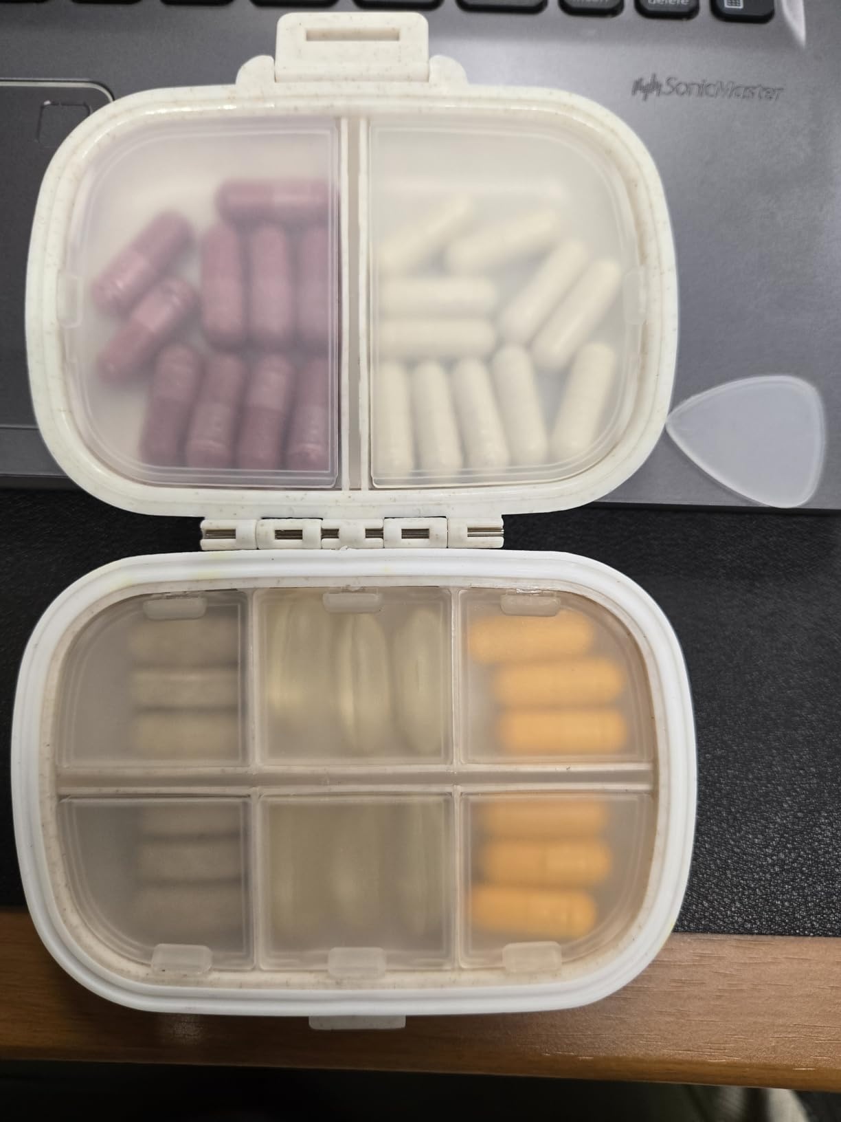 I love the pink version – cute and functional for my supplements. The compartments are just the right size, and the lid snaps securely. Compact for travel or work bag. Easy to clean too. Makes taking meds less of a chore – stylish and practical!